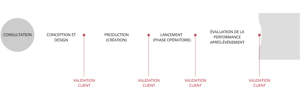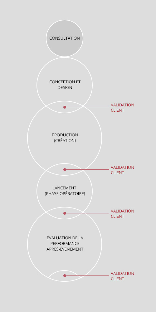 Création Box 5 vous offre un service événementiel haut de gamme, ancré dans une vision d’affaires tangible, intégrant un service 360 degrés comprenant l’analyse stratégique de vos besoins, un suivi total, incluant votre validation à chaque étape du processus, ainsi qu’une évaluation de performance post-événement.